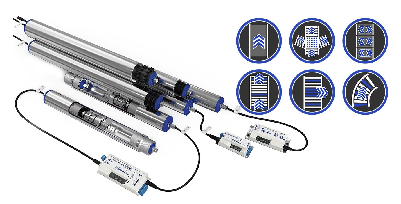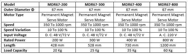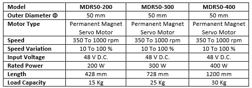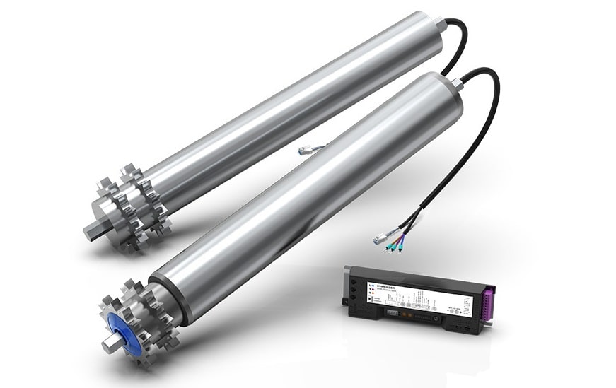 Motor Driven Rollers Have In-Built Permanent Magnet Brushless DC Servo Motor Drive. Well Suited For Belt-Wheel Sorters, Roller Conveyors, DWS Dimension-Weigh-Scan Systems. Their Quick Easy Installation Simplifies Design-Assembly Of Conveyors-Sorters. Avoids Need For Bulky External Gear Box, Chain Drives, Motors, etc. Safe Low Voltage 24/48 V DC. Gear-Less Reduction Ensures Silent Operation & Reliability For Quick & Frequent Start-Stops. For High Quick-Response Applications With Speeds 30-180 /min 10-100% With PMDC Servo Motors. Adapts To Multiple Control Cards For I/O Control, ZPA Function, & RS 485 CanBus. Also Offered Low Cost Option With Stepper Motors With 30-100% For Less Accuracy Applications.